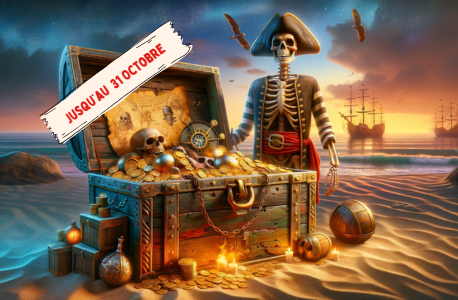 4 pirates légendaires ont scellé un trésor d'une grande valeur dans 5 coffres emplis de mystères. Bonne chance à celles et ceux qui tenteront de le récupérer!è>